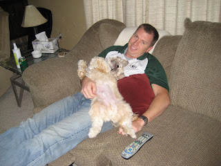 The long awaited trip to Michigan is over. While I'm sad, it was also nice to get home after a week of being away. It was GREAT to meet Sam, he is so cute and such a good baby. We got to spend a lot of time with my parents and grandparents which was very nice too. I'm hoping to get over to lower MI more often than every other year. It is just too long! Maybe we can go back next summer since we won't be there for Christmas. I want this little one to know his/her Michigan family too! We had a hard time getting home on Friday. We actually ended up staying overnight in a small town about an hour east of Chicago because of the ice storm. The roads and traffic were terrible. But...it was just more quality time for Dave, Ethan and I. We watched movies and ordered pizza. We eventually made it home on Saturday morning safely. So that's what counts. Baxter ran around the house as fast as he could when we got home. I think he was excited to be back on his own turf.